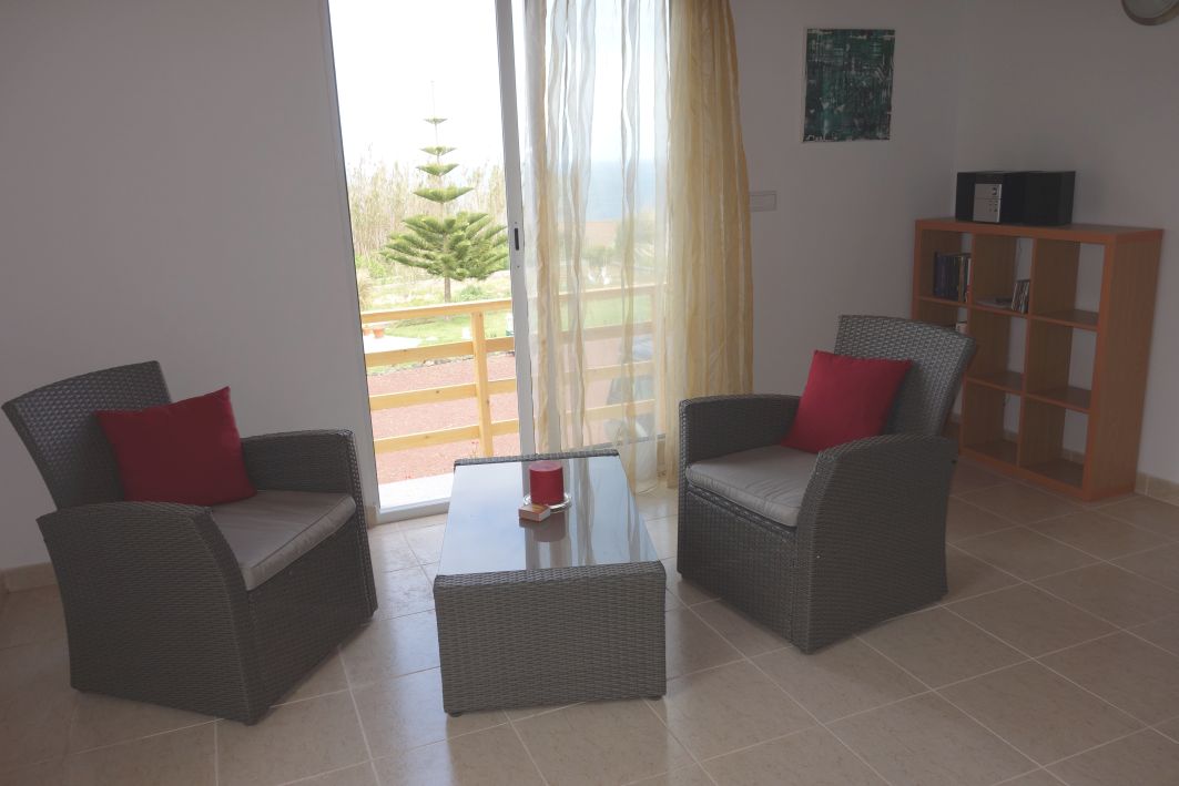 Il comprend une chambre à coucher (d’env. 20 m2) avec un grand lit pour 2 personnes, un salon, une salle de bain, une kitchenette avec réfrigérateur, machine à café et bouilloire électrique (sans possibilité de faire la cuisine), ainsi qu’une terrasse avec vue directe sur la mer.